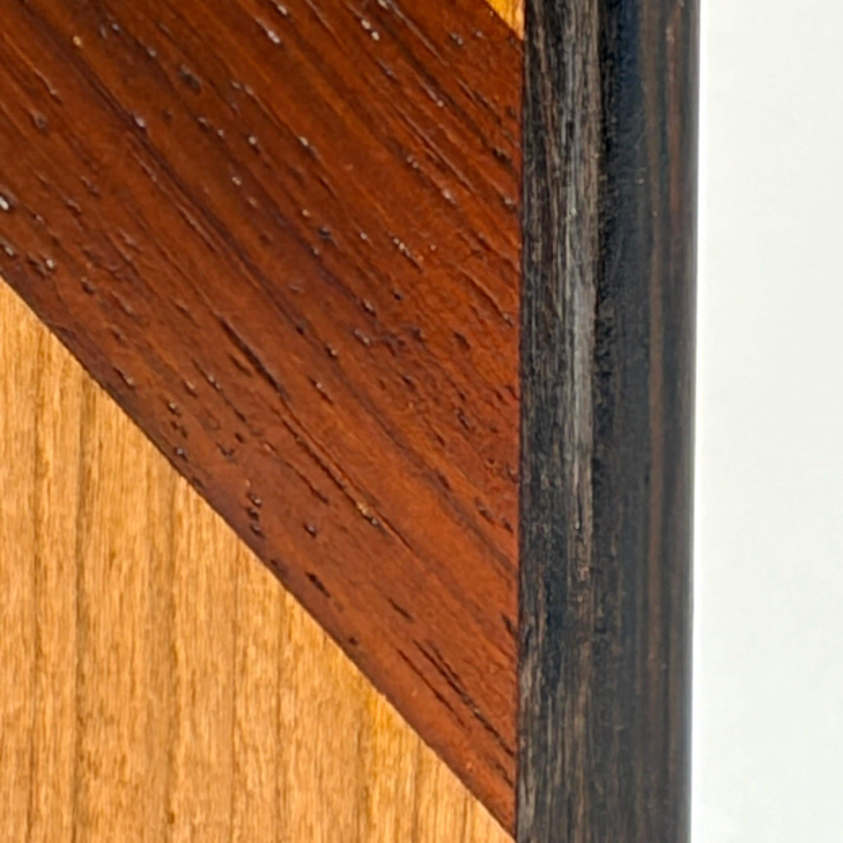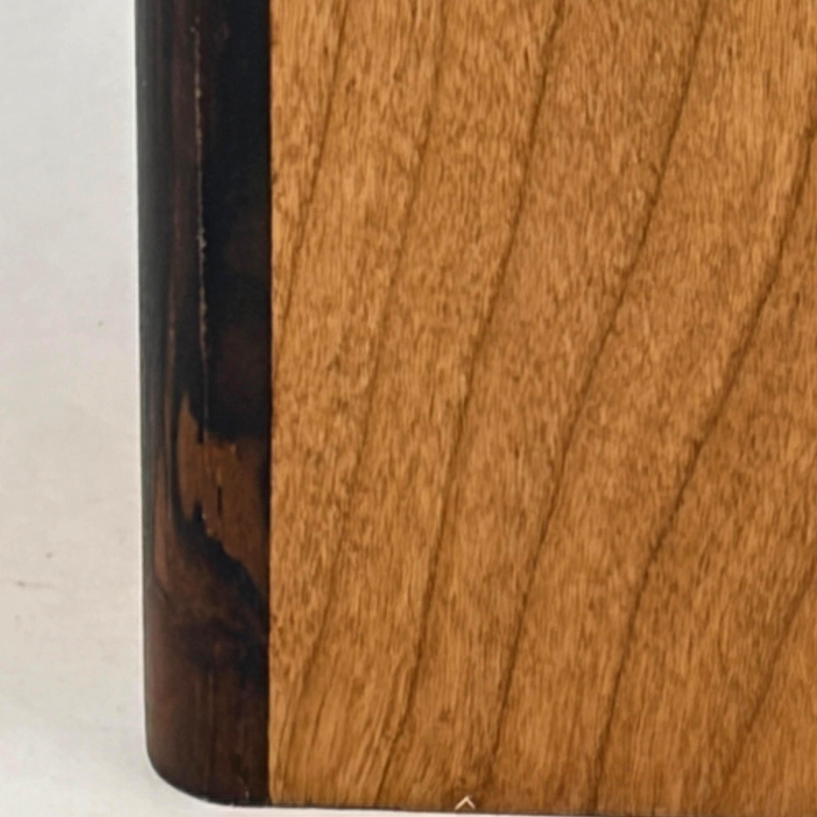 The triangularly shaped box and accents were carefully cut and fitted using hand-held tools and small shop machines. Similar boxes in a variety of wood selections will be available in my store, but these are photos of the exact box you will receive, with all the charming characteristics of the particular piece of cherry, padauk and ebony used to make this particular box.